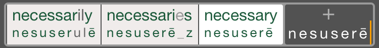 As you type phonemes, PhonemeKey tries to guess the word you intend and constantly updates it’s list of “word choices”. Phoneme Key generates the list of choices by taking into account phoneme match quality, word usage frequency, and context.